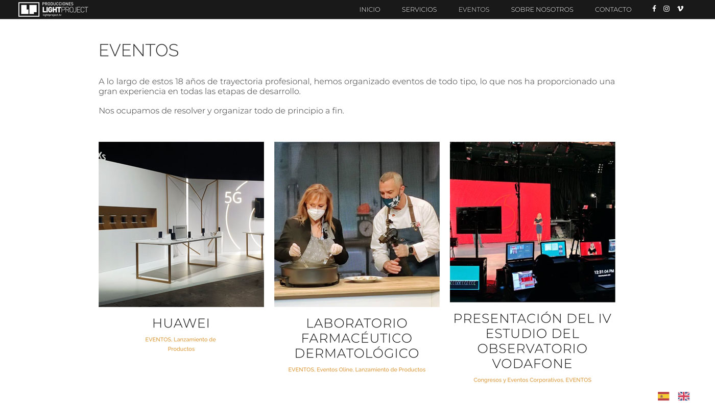 Diseño y Desarrollo de Web Multilingüe para Productora Integral de Eventos.